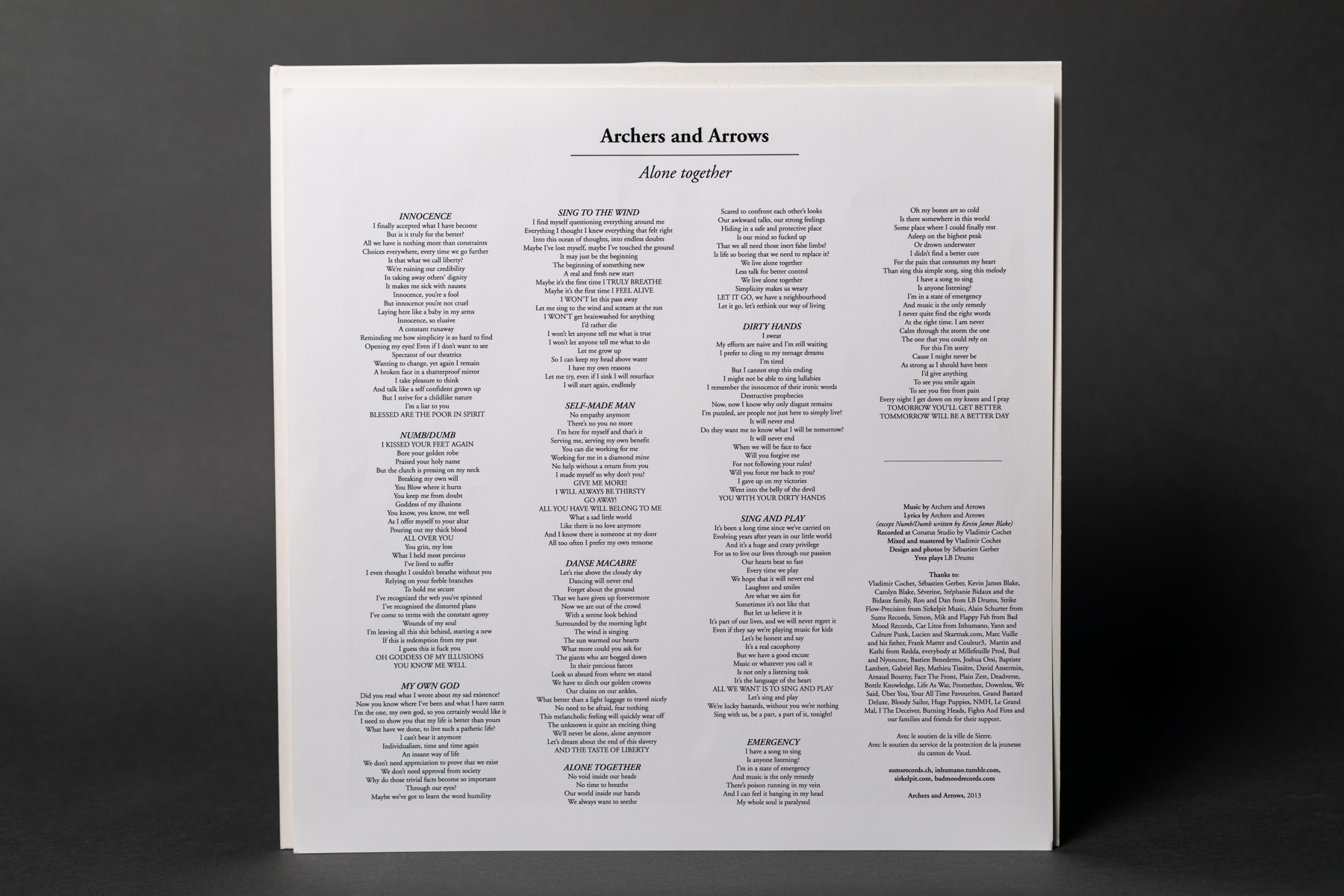 Photography and layout for “Alone Together”, the first album of Archers and Arrows, a punk-rock band from Switzerland.